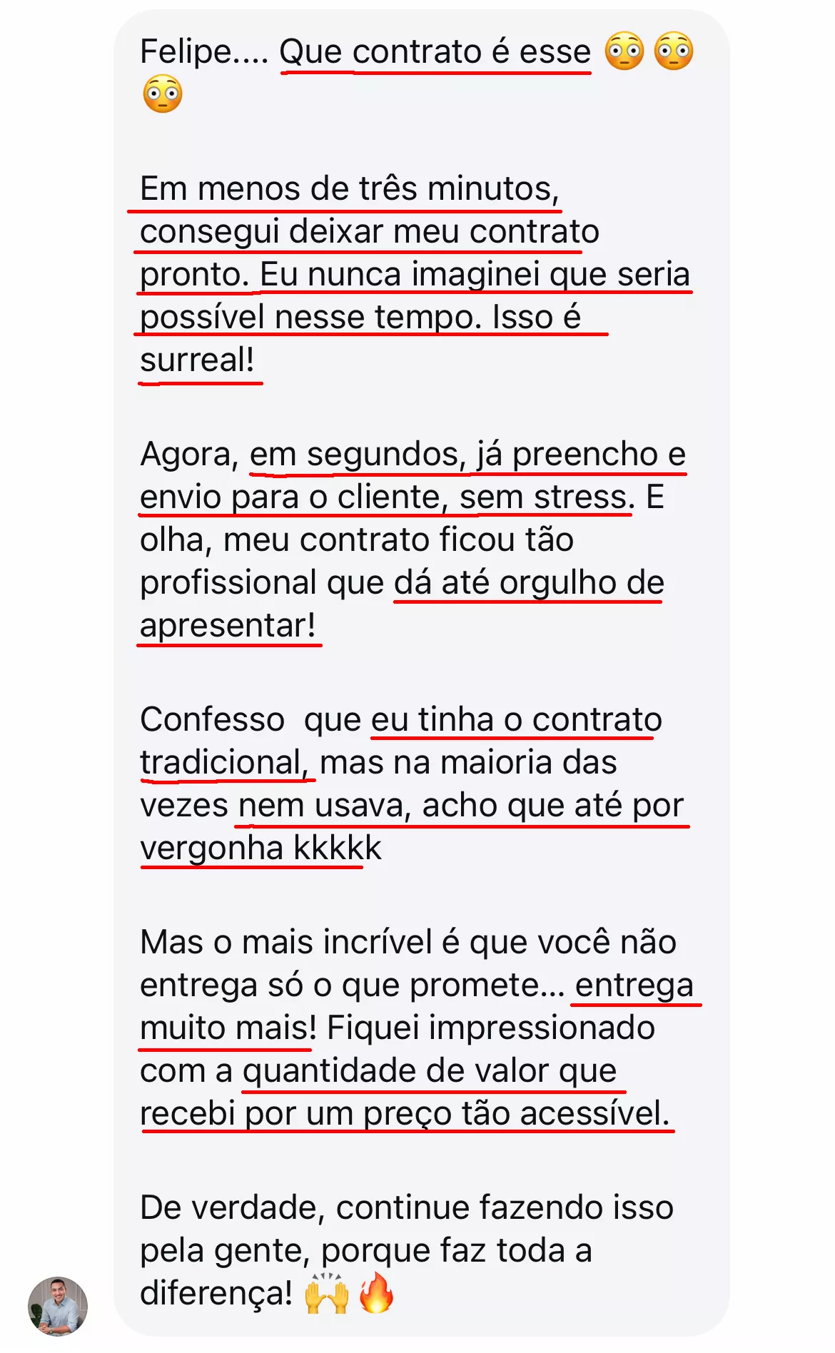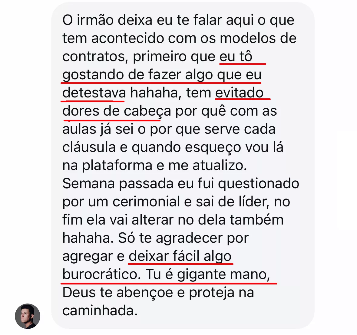 Se um dia você quiser revisar com um advogado da sua confiança, pode e deve, mas com os Modelos de Contrato Visual, você já parte de um material confiável, testado e feito por quem entende profundamente do que tá falando.