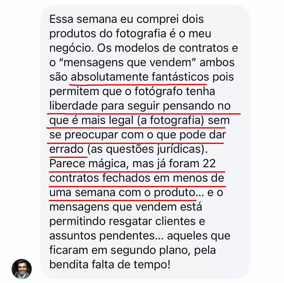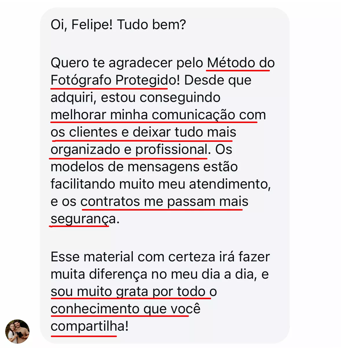 É prática de quem já viveu na pele os mesmos desafios que você enfrenta e transformou tudo isso em um sistema que protege, posiciona e vende, através de um método validado e usado por centenas de fotógrafos no Brasil todo!